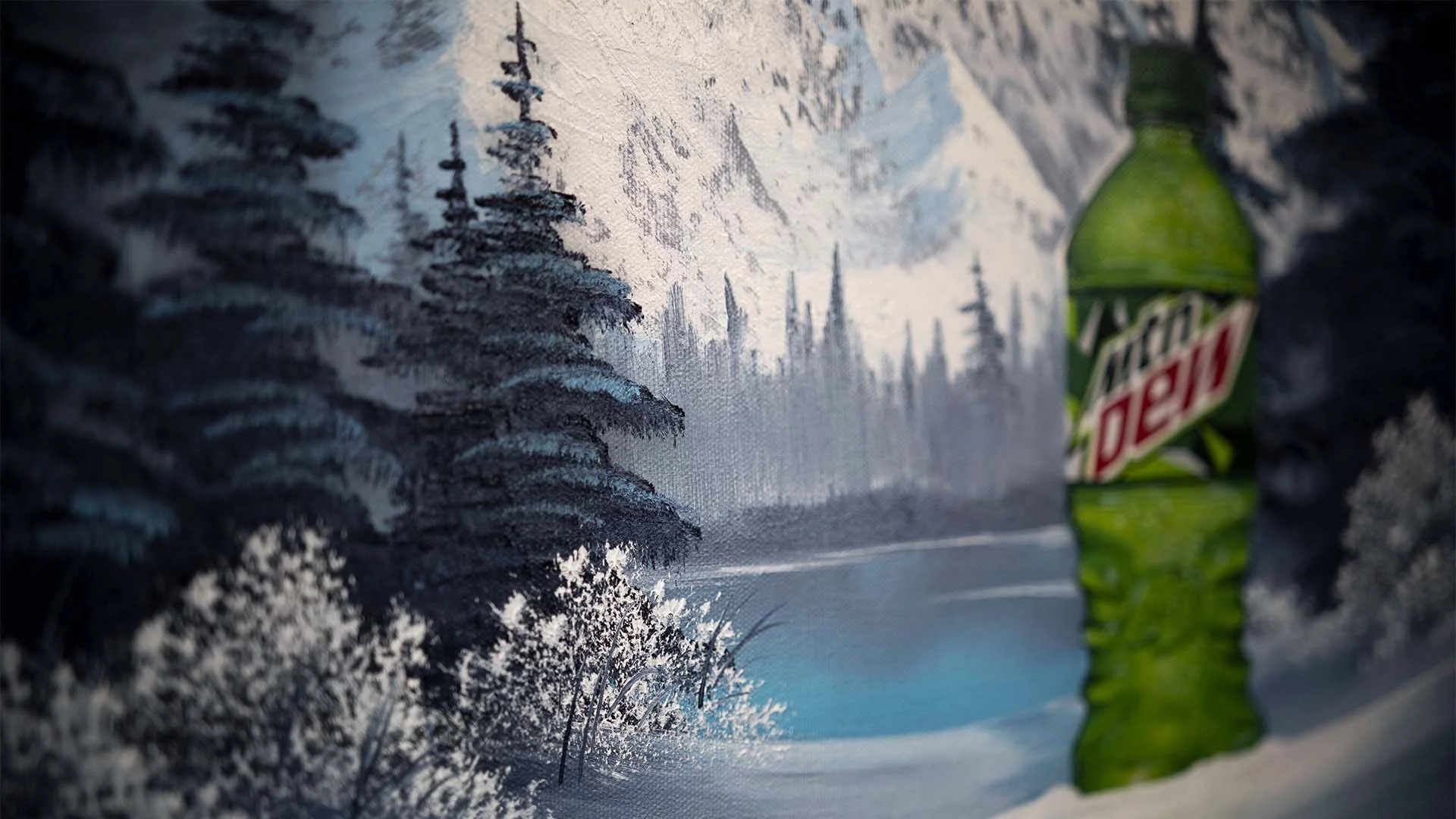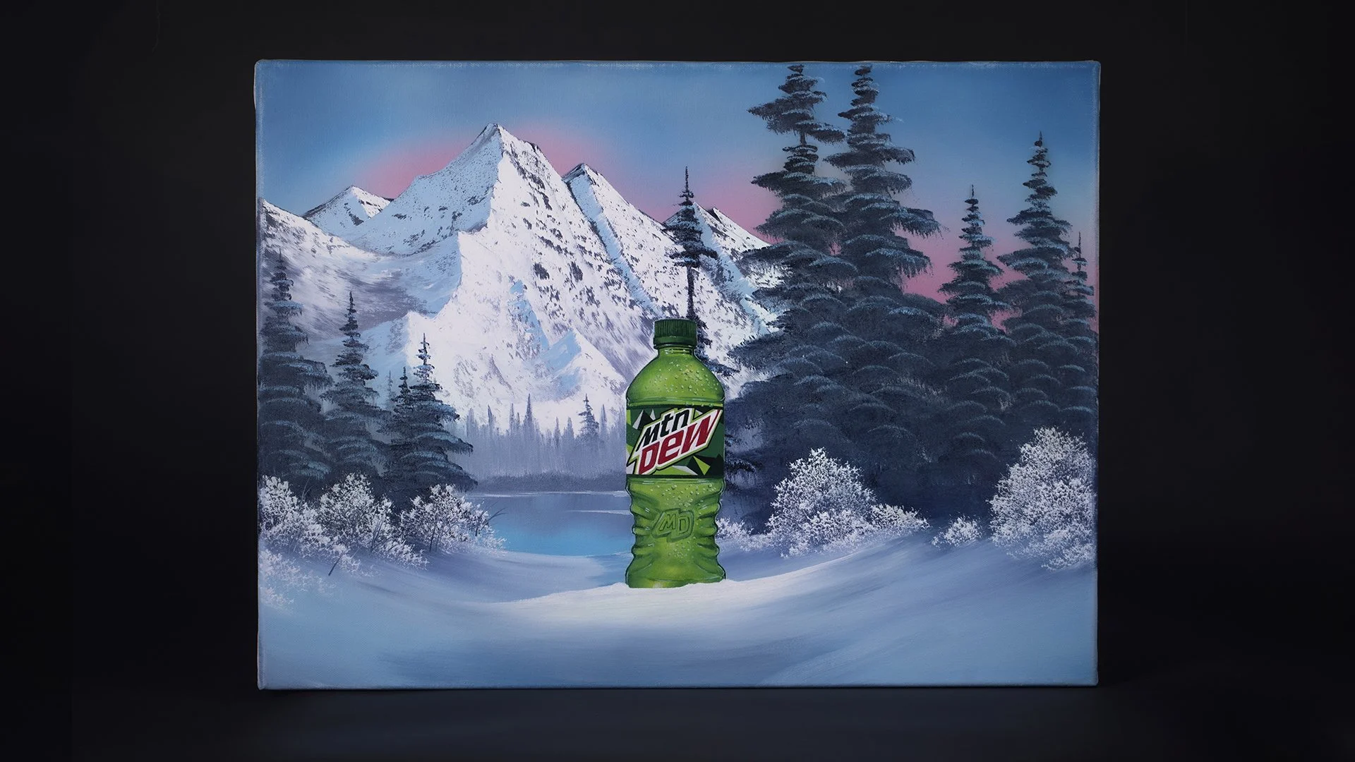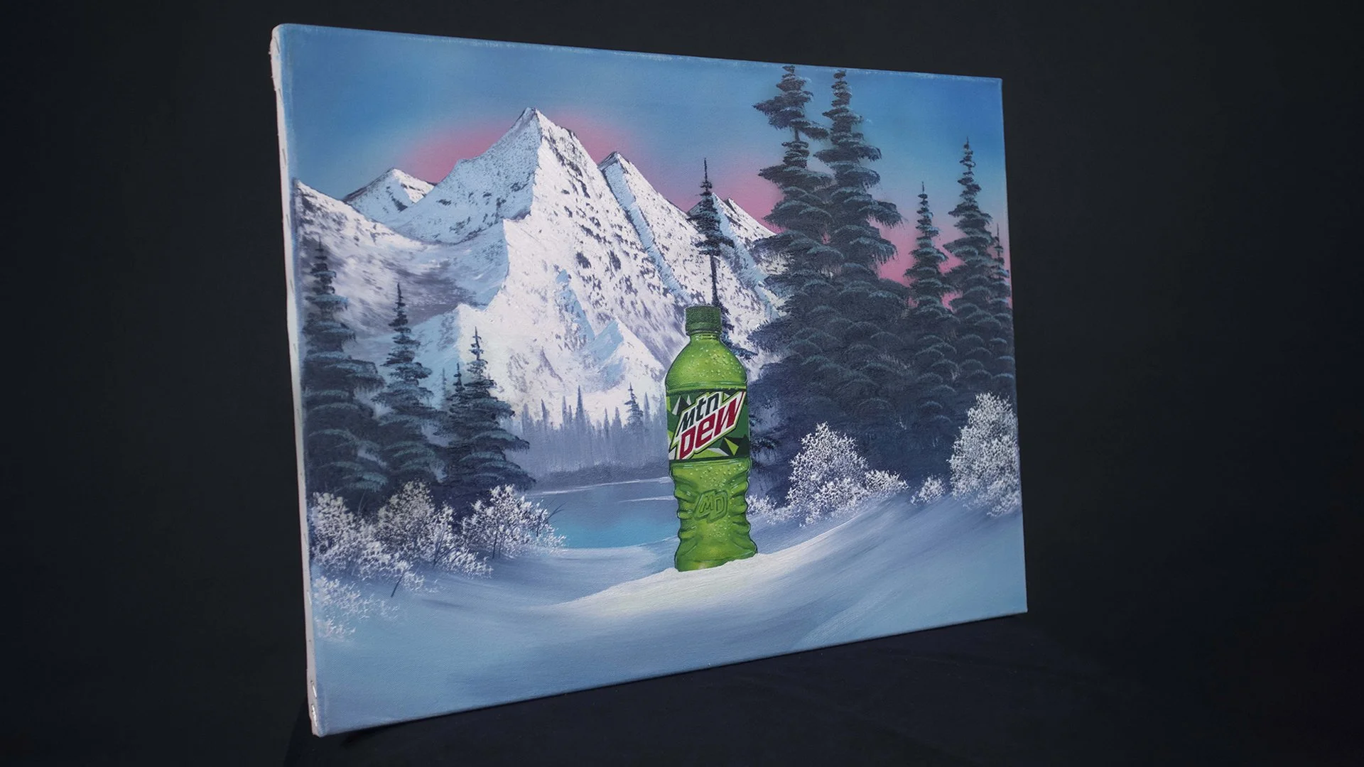 Auctioning off a Bob Ross x MTN Dew collab painting for charity.
